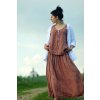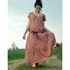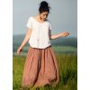 Maxi sukně z velmi kvalitního, jemného, lehoučkého, měkčeného českého lnu v barvě světlé terakoty... Sukně je široká, v pase / sníženém pase dvě řady gumiček v tunýlku a tkanička ze stejného materiálu na stažení. Ruční tisk - svislé pruhy na předním i zadním dílu.
