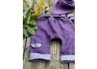 Kraťasy ušité z krásného jemného lnu české výroby. V pase dva tunýlky - gumka a tkanička na zavázání. Velké všité kapsy, volný, slušivý střih.