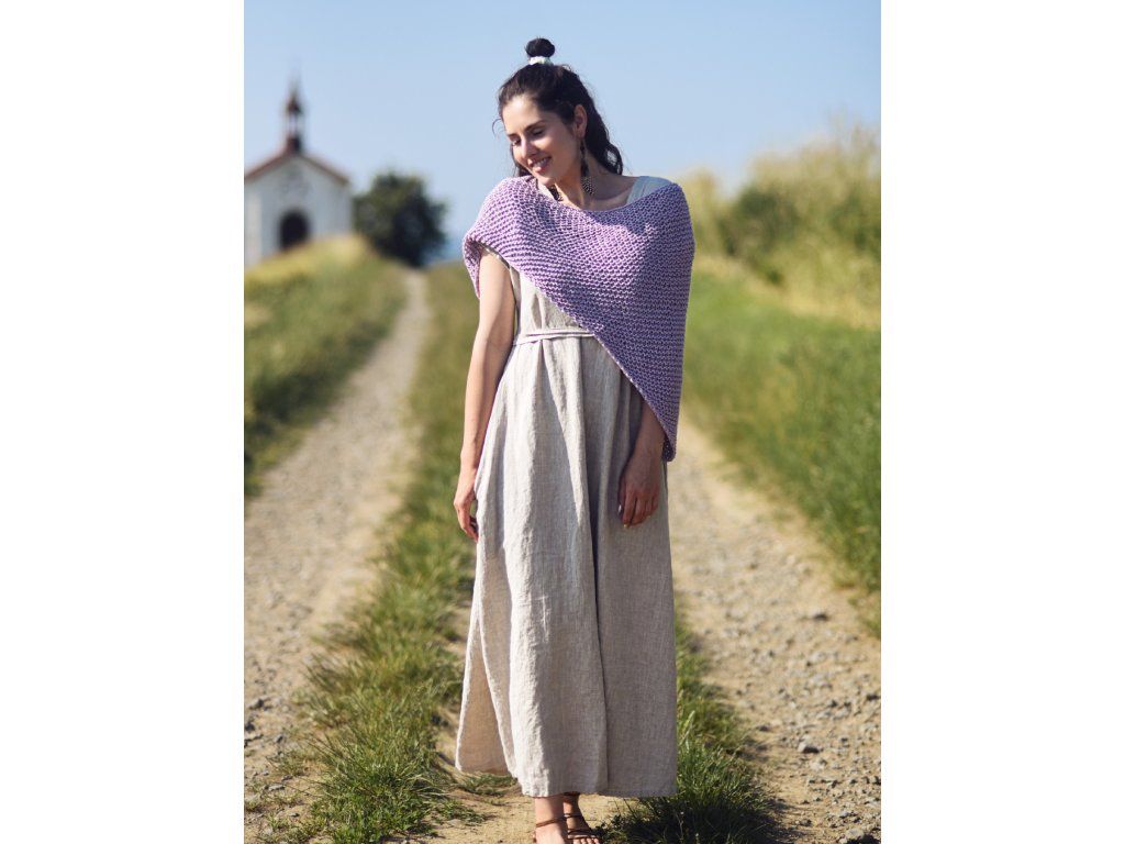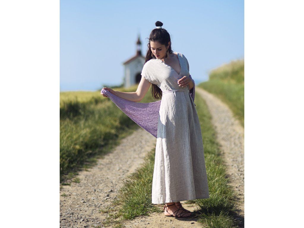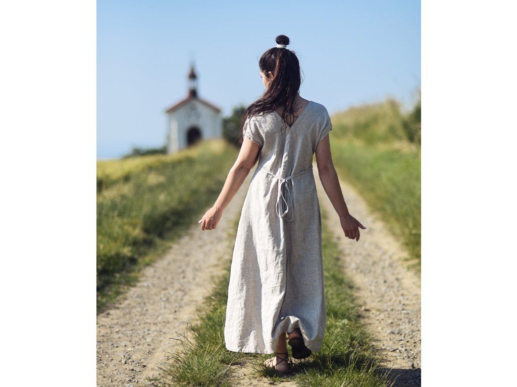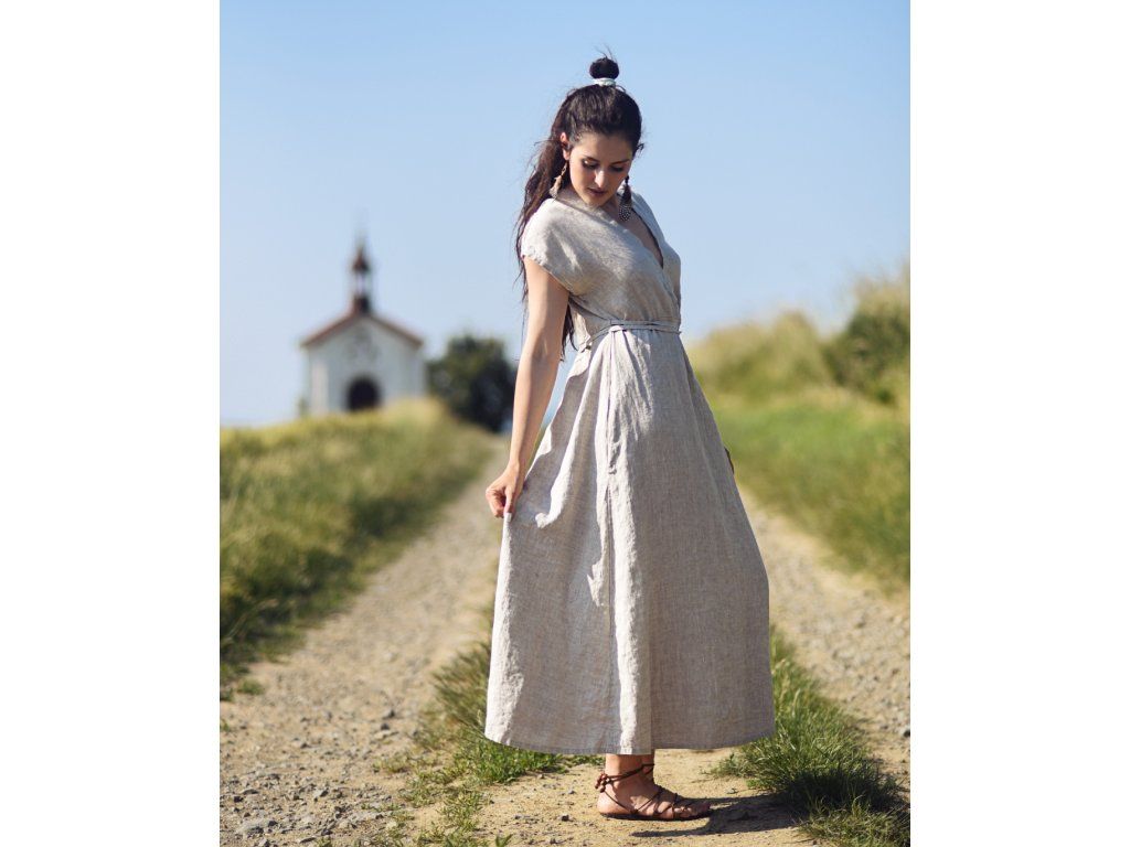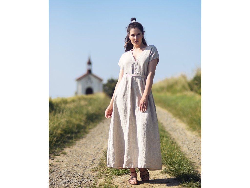 Lněné maxišaty s vázáním Režné
