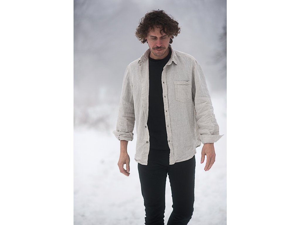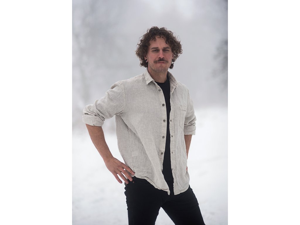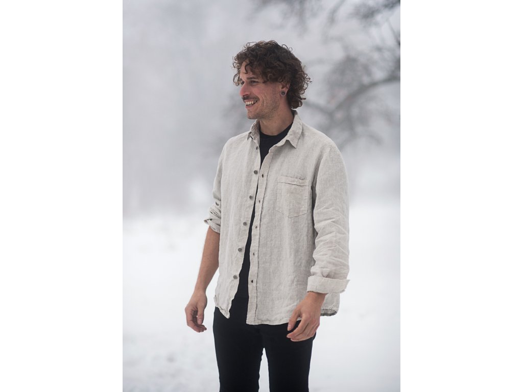Pánská košile z velmi kvalitního jemného lnu české výroby v režné barvě.