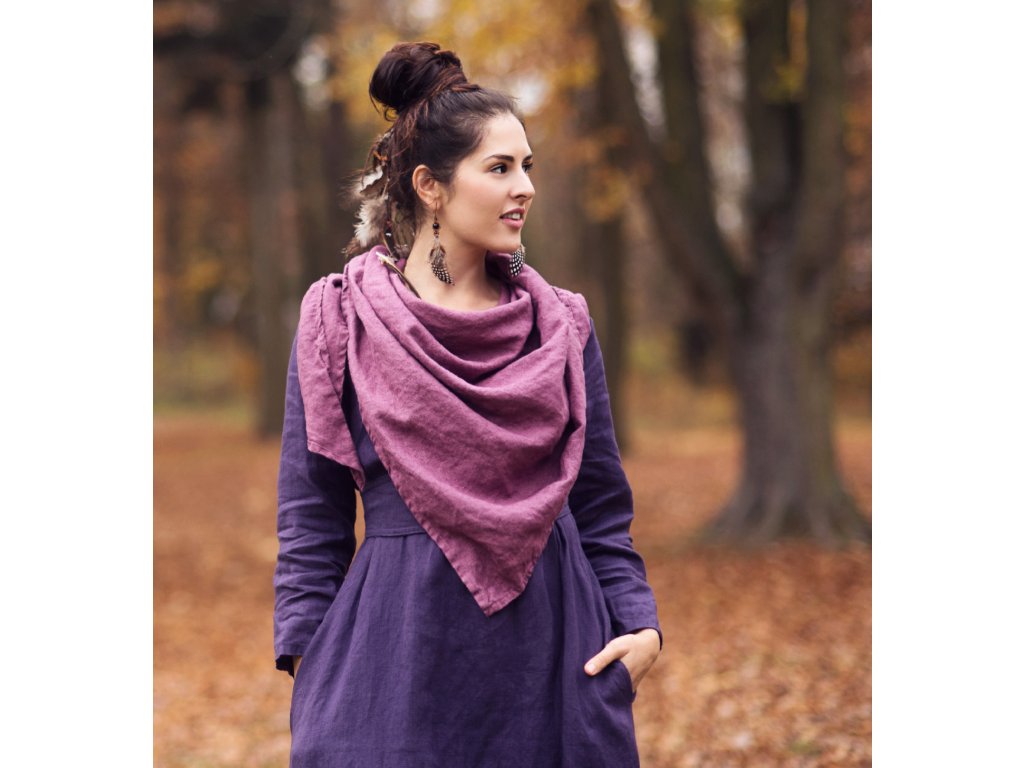 Veliký trojcípý šátek z českého lnu v laRose odstínu.