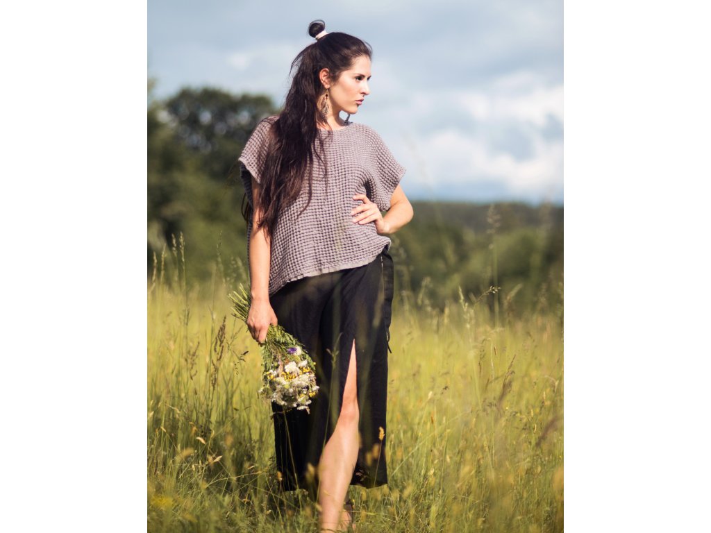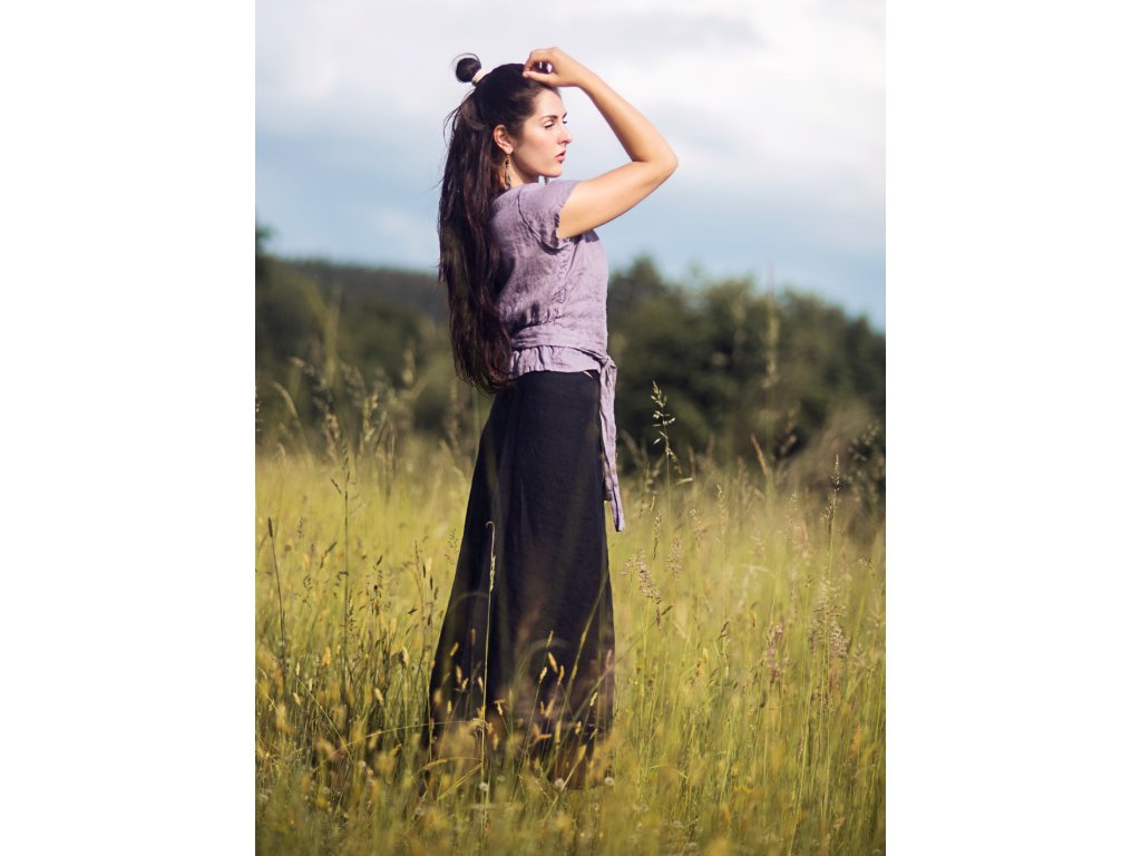 Zavinovací sukně z kvalitního, jemného, českého lnu černé barvy... bezešvá, vzadu delší, přední díly šité do oblouku.