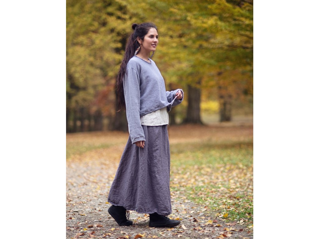 Silnější materiál se skvělými vlastnostmi lnu - v zimě hřeje, v létě chladí, výborně savý a vzdušný, pohodlný, poddajný, vhodný k celoročnímu nošení. Materiál je tkaný, ale díky pružnému krešování se chová podobně jako úplet - lehce pruží.