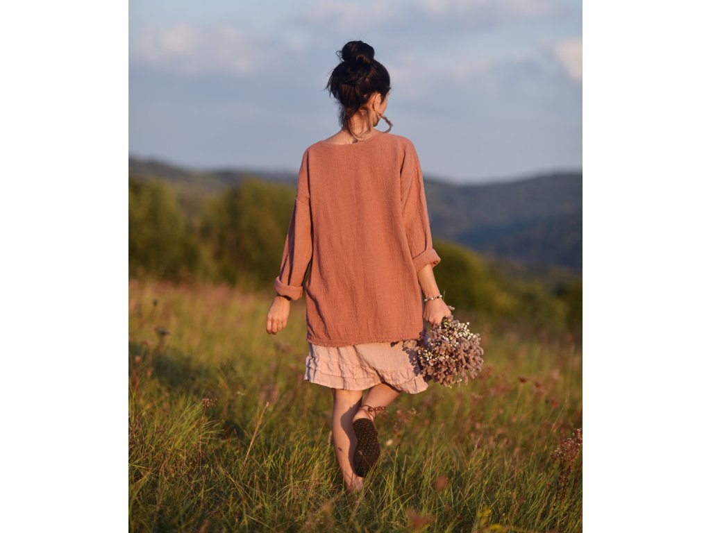 Lněná halenomikina Terakota