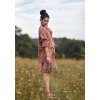 Top z velmi kvalitního, jemného českého lnu. Jednoduché, hladké provedení, krátký, rovný střih, propínání na knoflíky z přírodní perleti, dlouhé volné rukávy nabrané do gumičky.